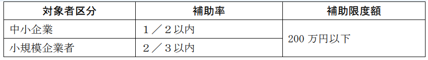 ・補助率は中小企業1/2以内、小規模企業者2/3以内